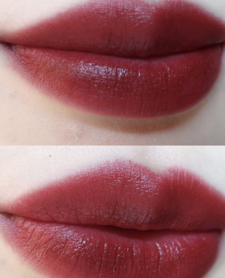 薄涂是偏紫色调的,是非常的小可爱。厚涂气场全开,很显白,秋冬季节是非常适合这个颜色,黄皮肤白皮肤都是适合的。